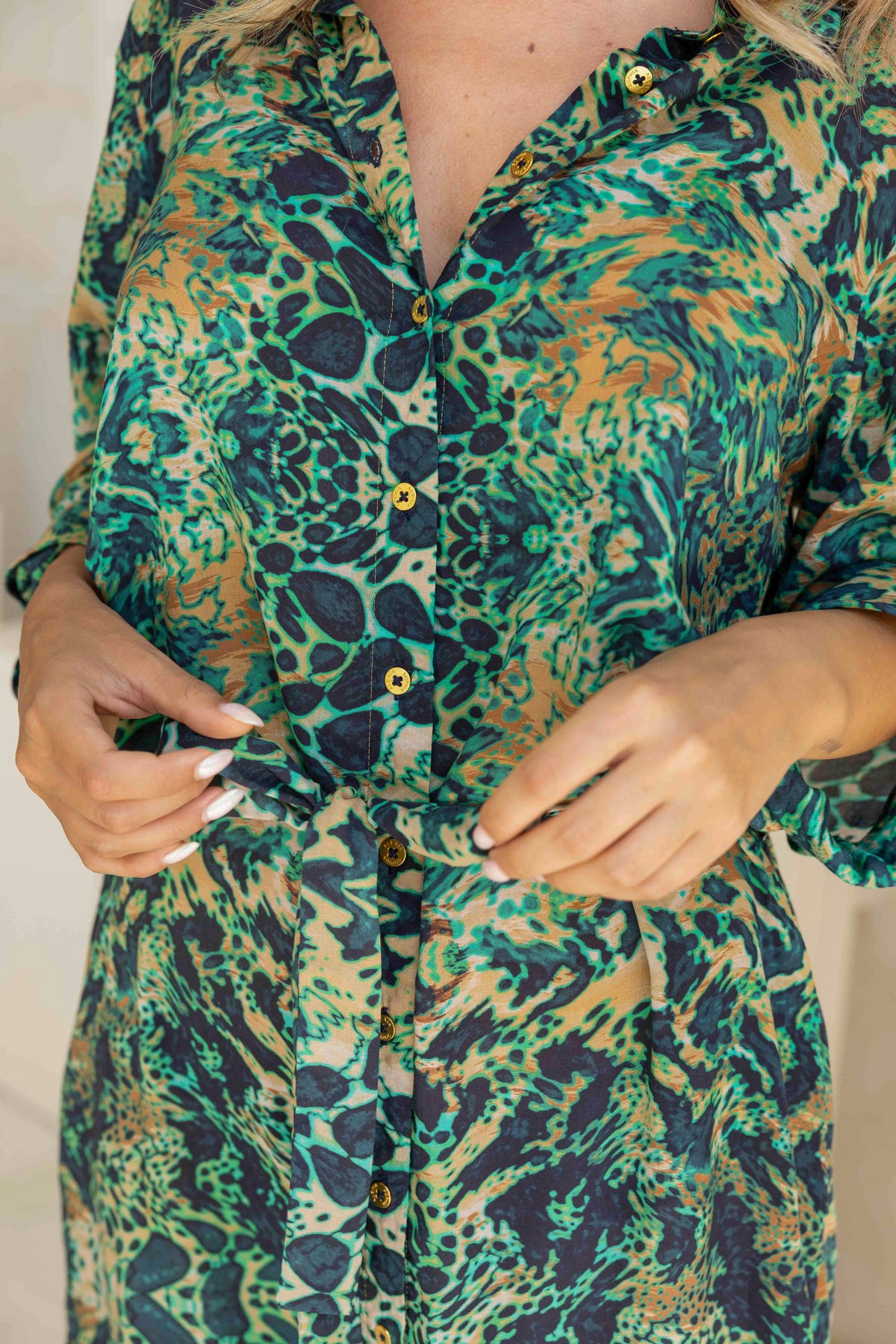EMERALD LEOPARD ZANZIBAR SHIRT DRESS
