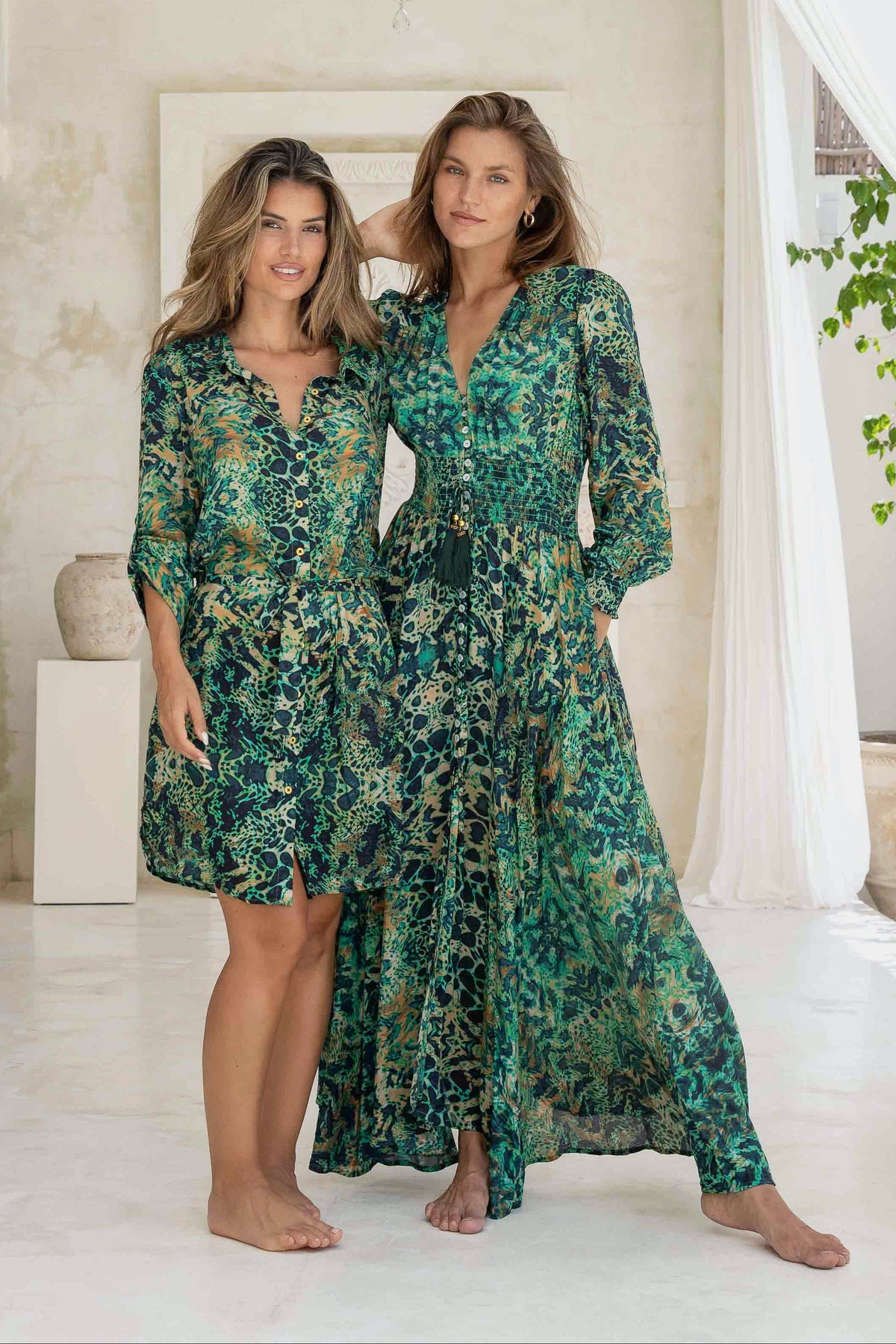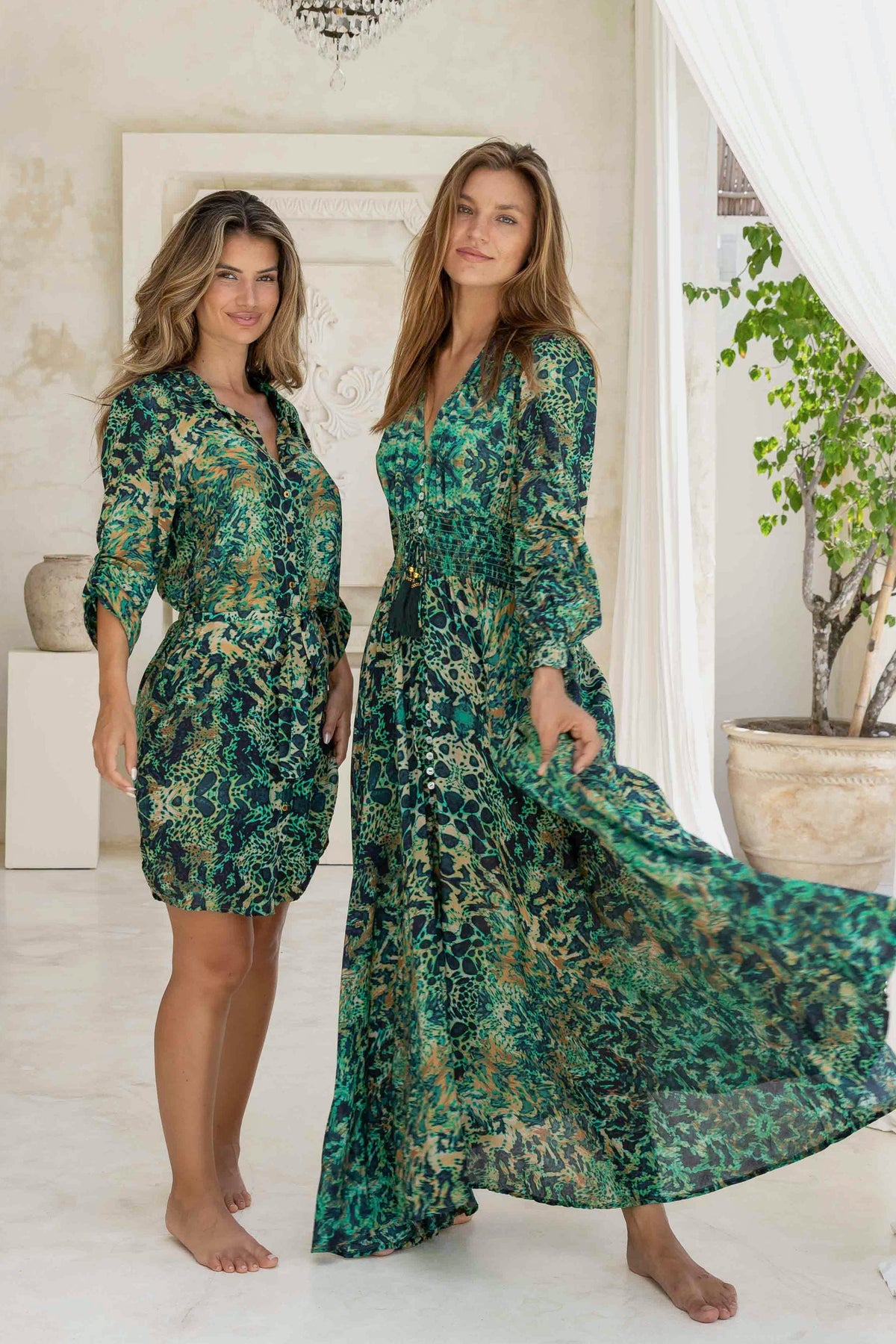 Our favourite trans-seasonal print is back and better than ever! Introducing a limited drop of our two best-selling styles, the St Tropez Dress and Zanzibar Shirt Dress, now reimagined in our striking Emerald Leopard print. Perfect for cooler days and effortlessly chic evenings.